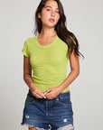 The 90’s Chartreuse Baby Tee channels pure retro energy with its fitted, cropped silhouette and scoop neckline.