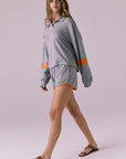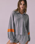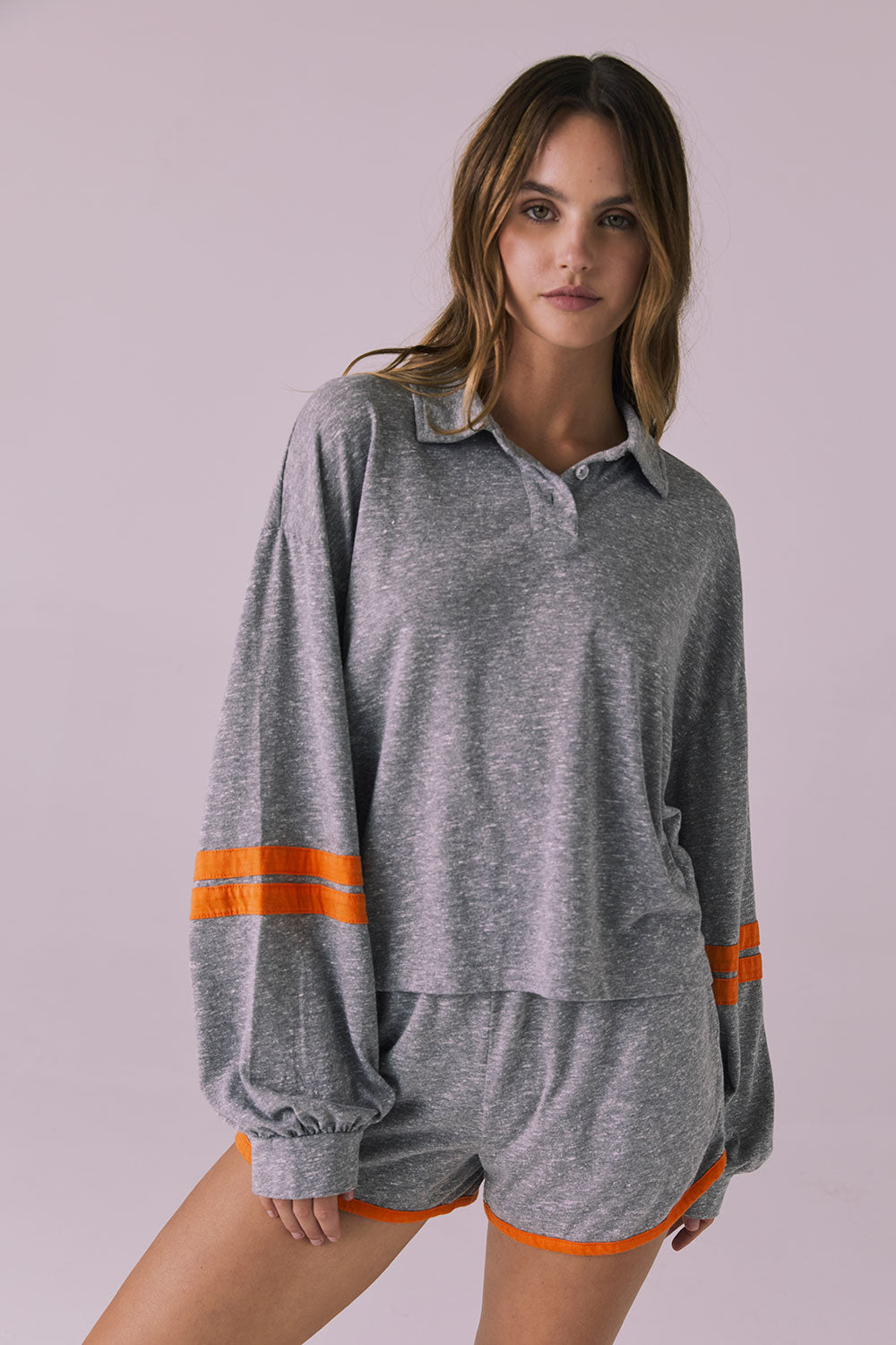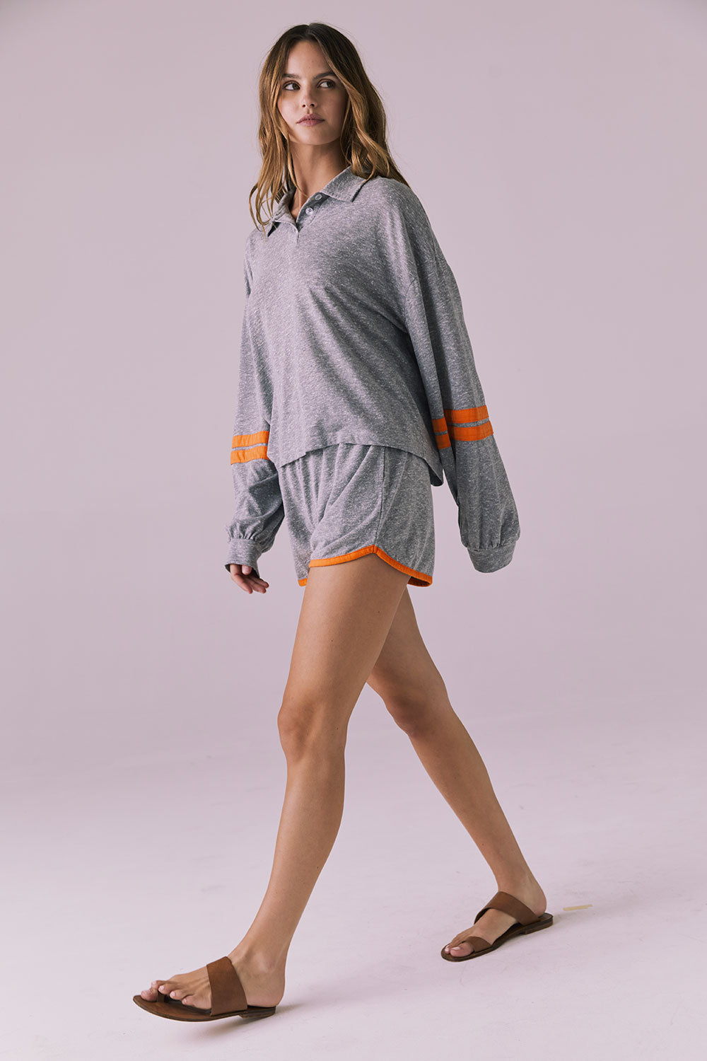 Serving up preppy chic vibes, this Streaky Grey statement piece features wide sleeves and striking stripe detailing.