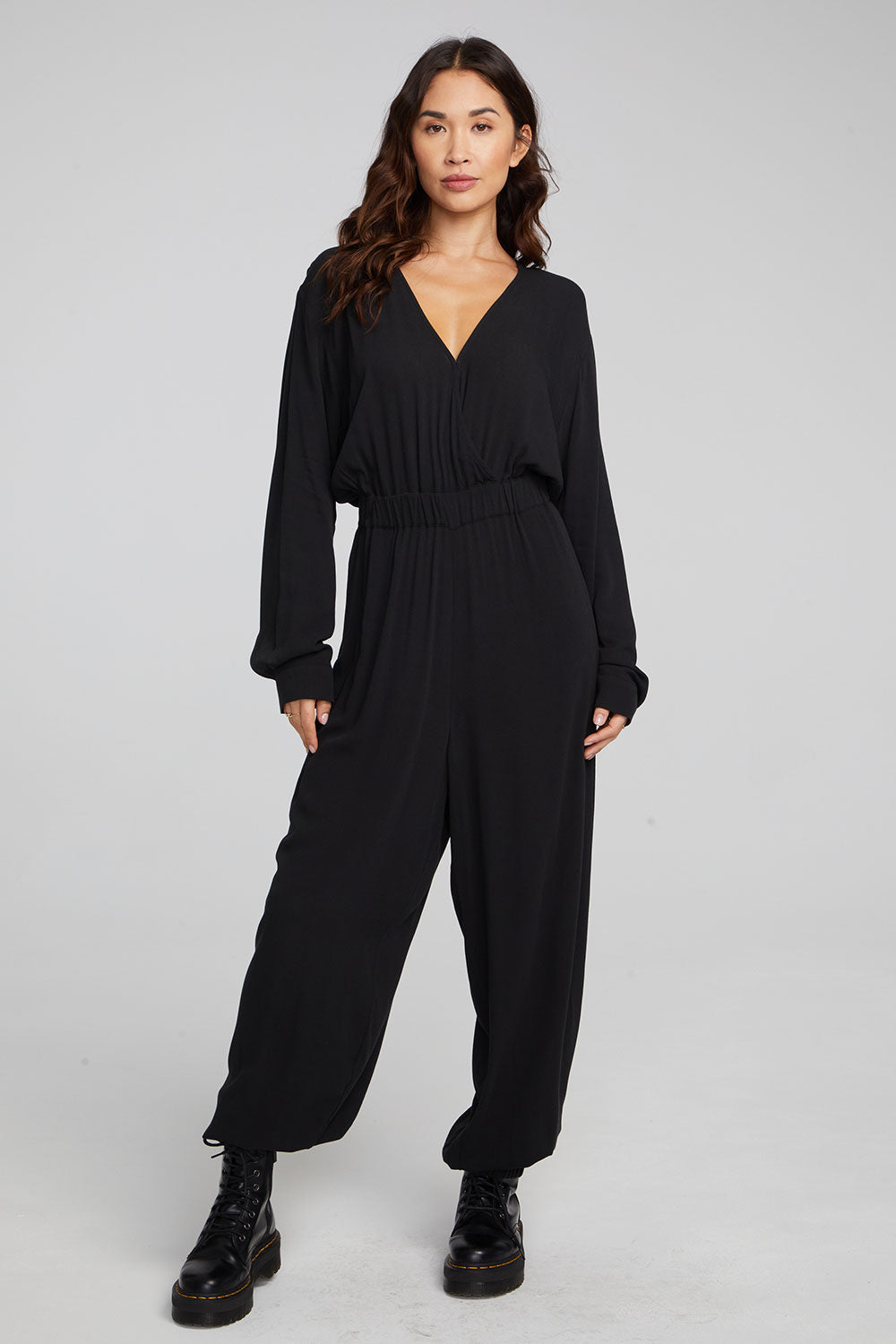 With a sleek black color, this jumpsuit will be a standout in any closet.