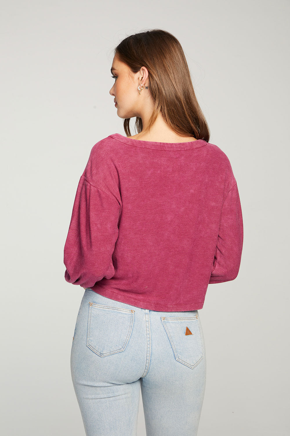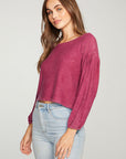 Experience the ultimate luxury in our Cozy Knit Blouson Sleeve Crop Pullover.