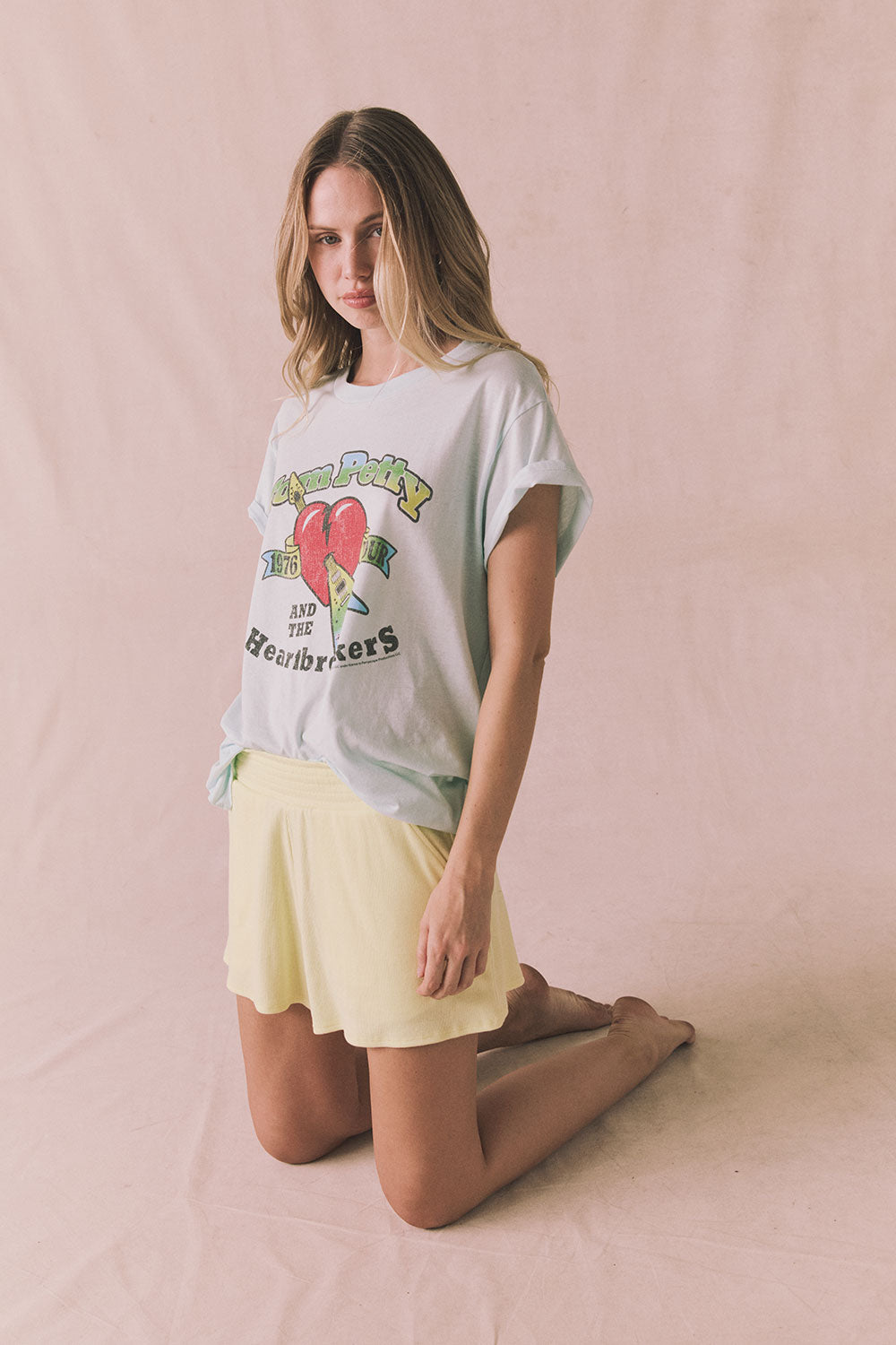 Perfectly paired with our matching Brandi Tank or Liza tee, these Panna Cotta staple shorts feature a wide textured waistband, flared legs, and pockets for added convenience.