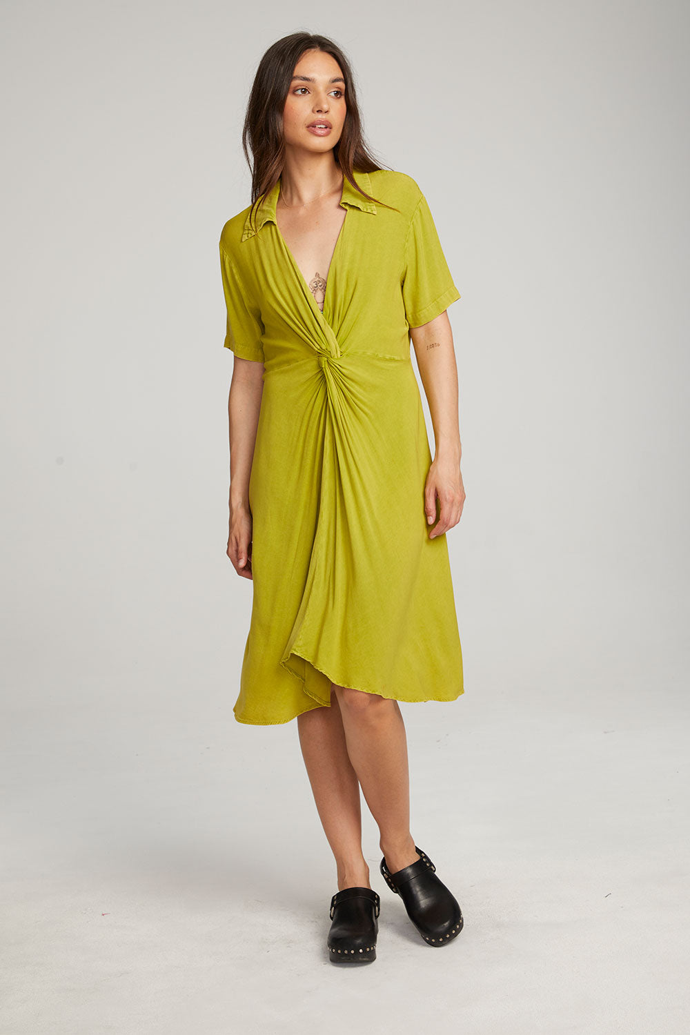 Step into the spring looking effortlessly chic in the Elsa Midi Dress in citron. Capture the essence of the new season with this midi's lively color and cool stitch detail that exudes a Southern Californian laid-back energy.