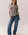 Game Day Tee – Gray Vintage-Style Tee with Maroon Graphic