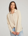 Update your office attire with the Helena Button Down in white pinstripe. Look sharp and stand out in the Helena Button Down. Great for a day at the office or a weekend casual outing.