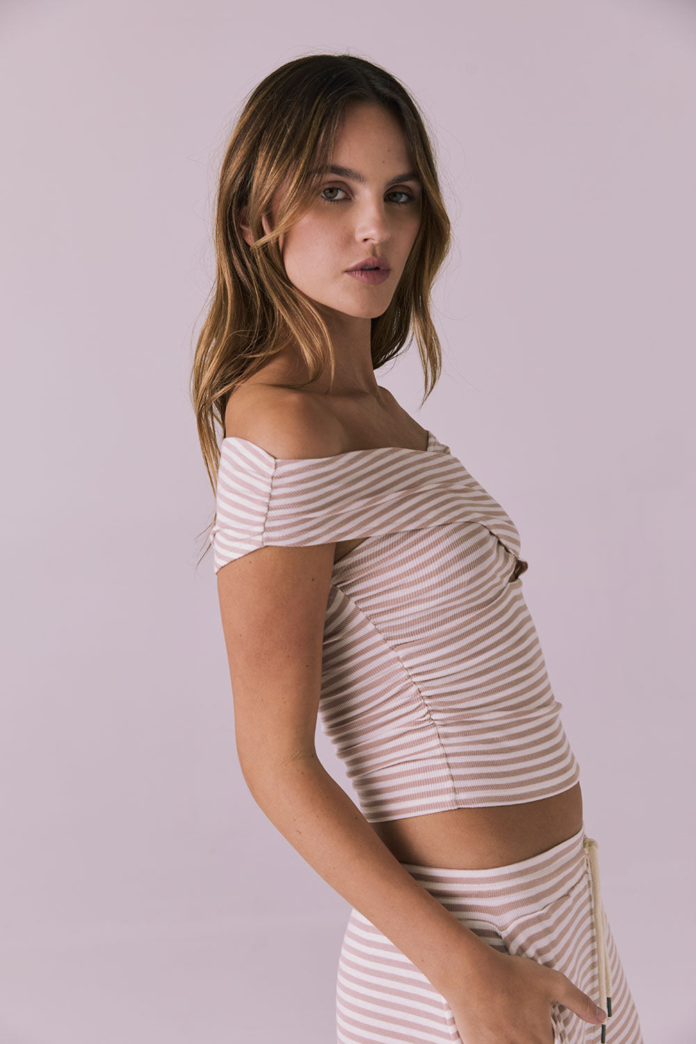 The keyhole cutout and off the shoulder design add a touch of playfulness, while the perfect fit and slight crop make it perfect for date nights.