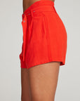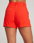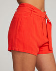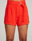 Elevate your style with these Lurex Flame Boucle shorts. Eye-catching flame red color and faux belt with loop add playful flair. Pair with a graphic tee and your favorite kicks for an effortlessly cool look.