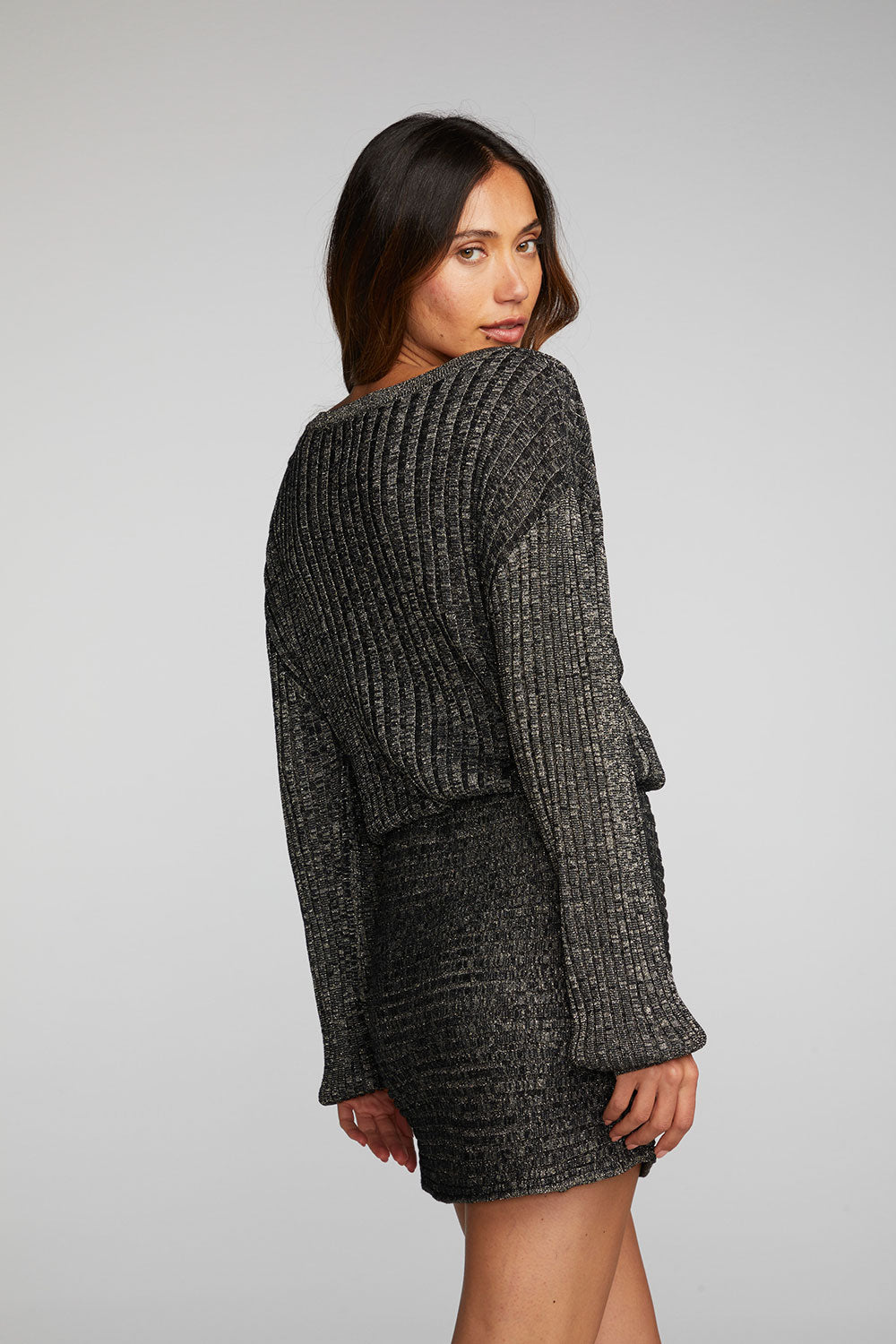Lurex Rib Knit Mini Dress with Shirring