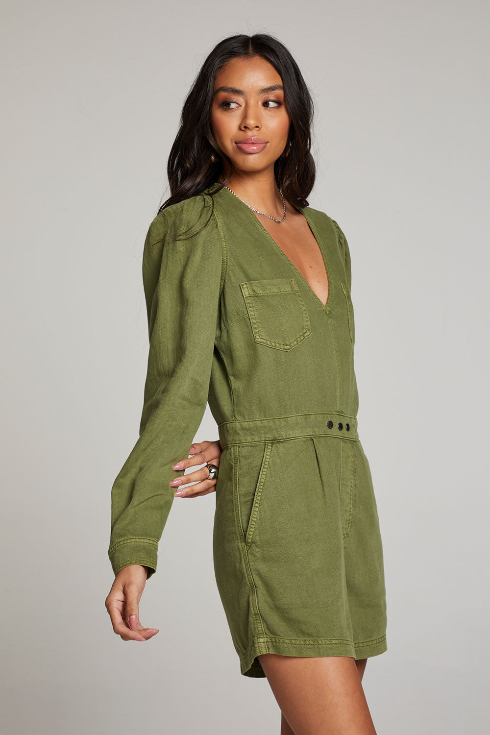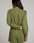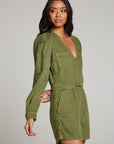 Elevate your style with the luxurious and sophisticated Sami Romper. Featuring long sleeves and a drapey waist, this chic jumpsuit is the epitome of elegance. The soft, botanical-inspired sphagnum green fabric adds a touch of natural beauty to this beloved date night essential.