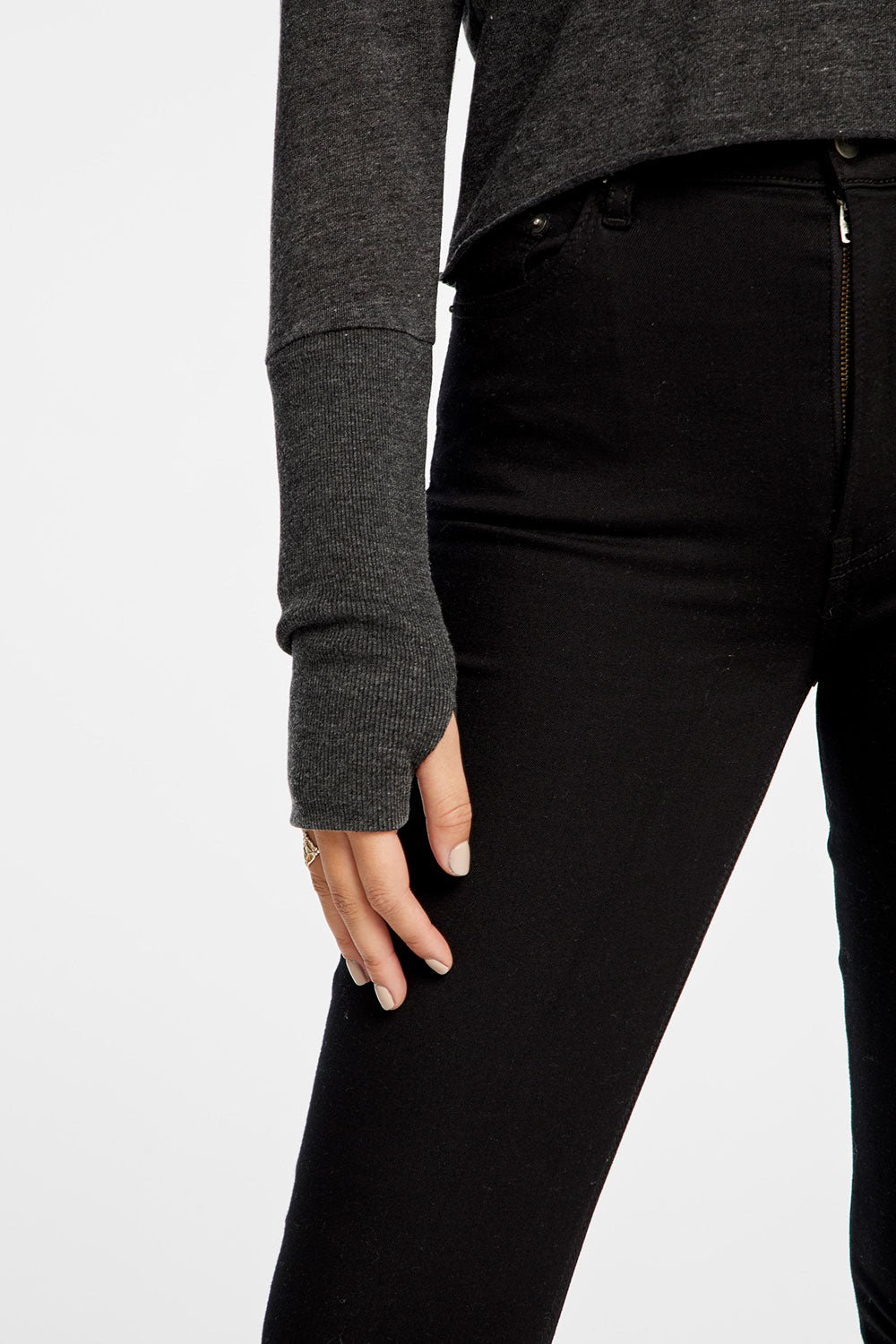 Triblend Jersey Cropped Open Neck Long Sleeve Thumbhole Tee