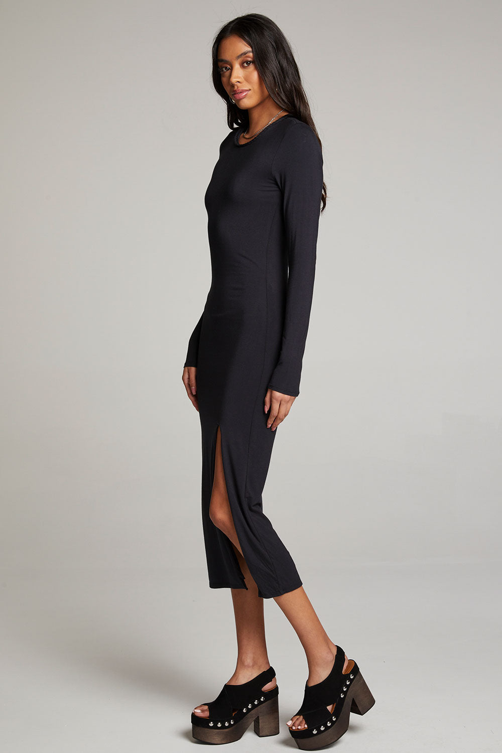 An easy wearing update to the classic LBD, the Vedaa Midi Dress is all sleek, Italian inspired chic. Dress it up with favorite jewelry, or pair with sneakers for a breezy, streetwear appeal. The clinging fit and midi cut lend this office friendly dress a subtle sensuality, perfect for an art opening or happy hour.