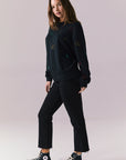 This black long sleeve channels bold graphic energy with front-to-cuff icon prints.