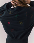 Allover Icons Long Sleeve – Graphic Black Top with Icon Prints